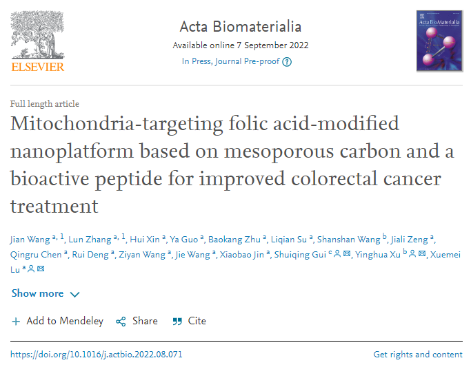 Lu Xuemei's team from the School of Life Sciences and Biopharmaceuticals at our university has made new progress in targeted drug delivery therapy for colorectal cancer